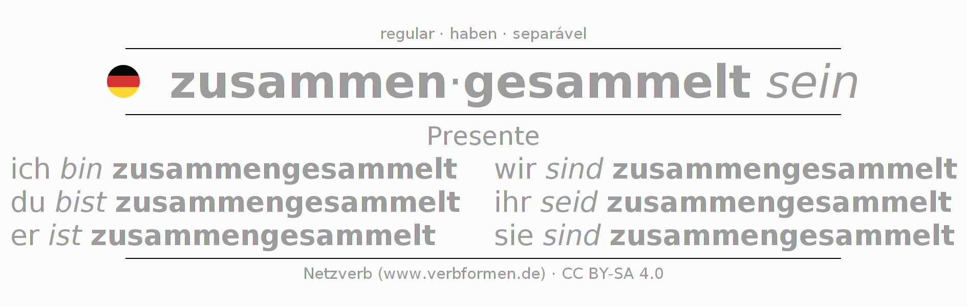 O verbo zusammensammeln é totalmente conjugado em todas as pessoas e números no Presente Indicativo