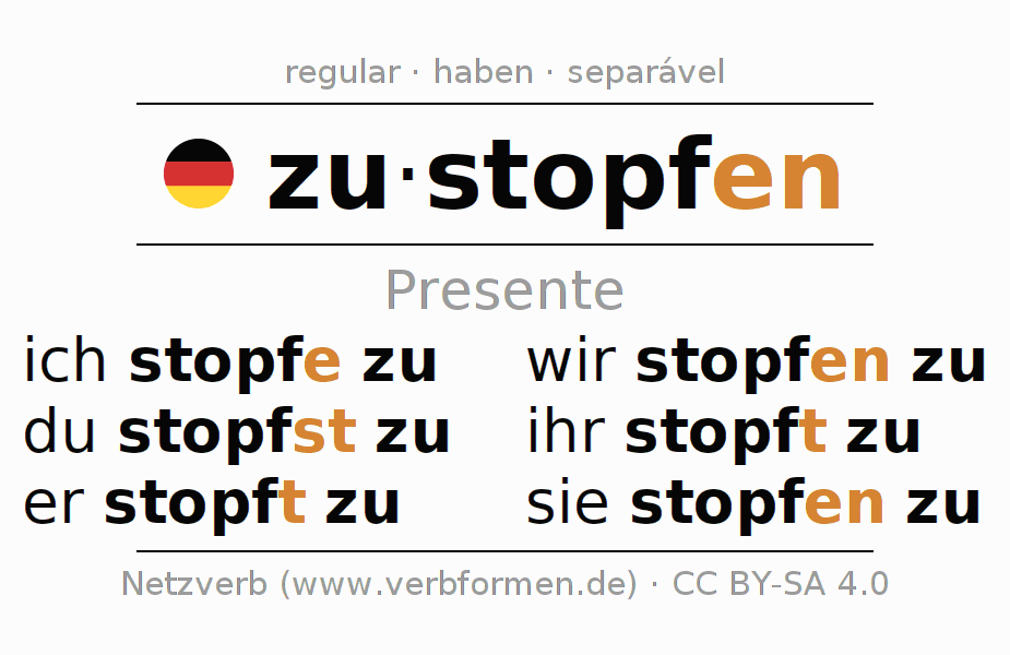 - Como conjugar o verbo zustopfen no Infinitivo?