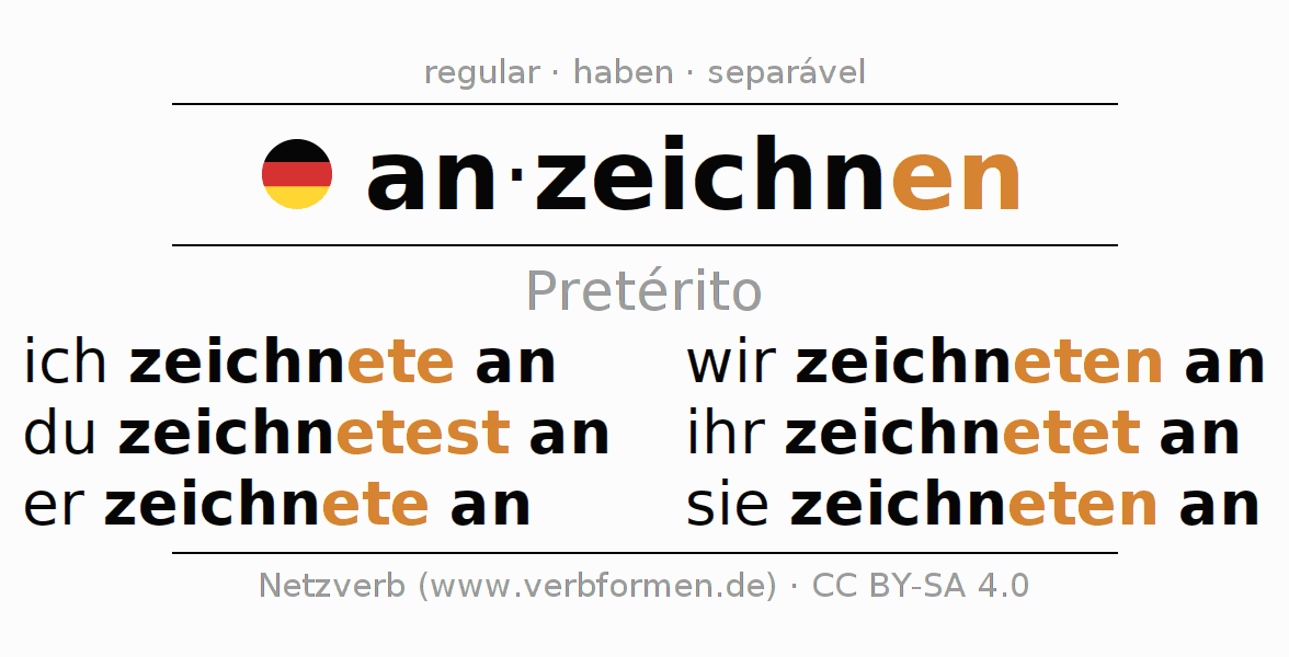 - Pretérito do verbo anzeichnen