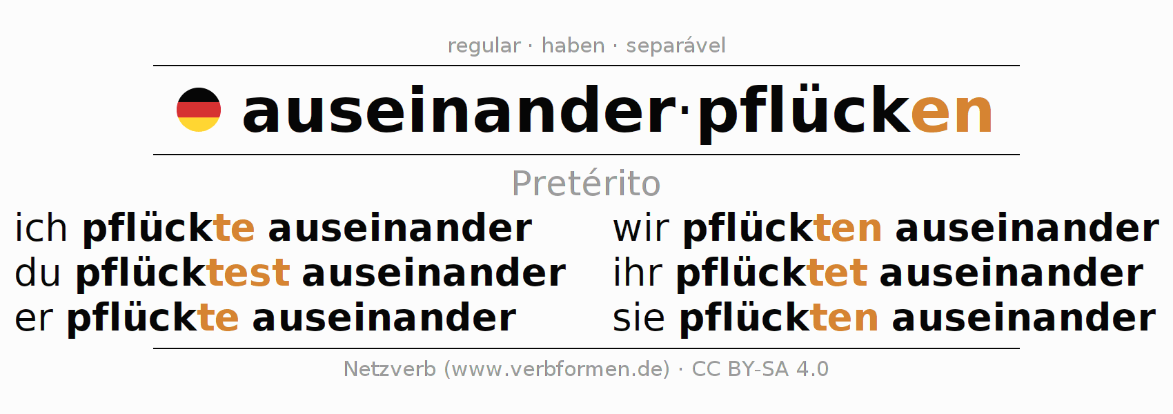- Como conjugar o verbo auseinanderpflücken no Pretérito?