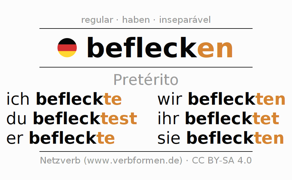 O verbo beflecken é totalmente conjugado em todas as pessoas e números no Pretérito Indicativo