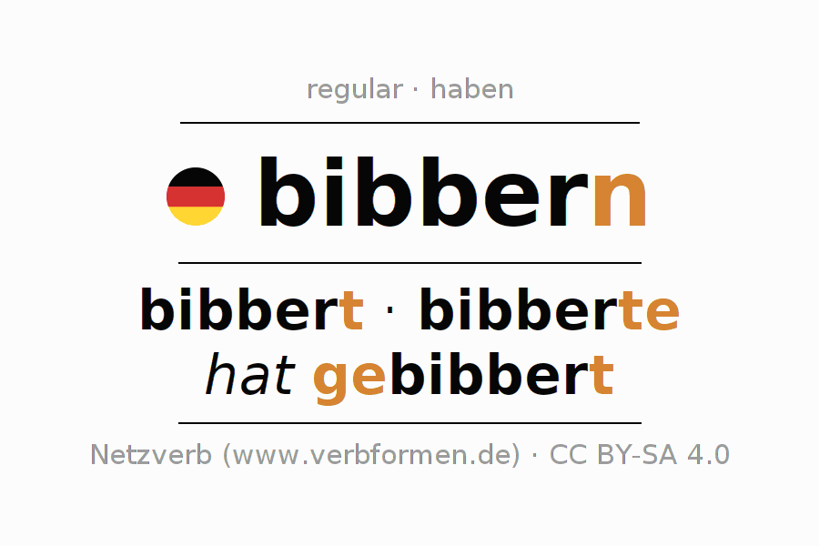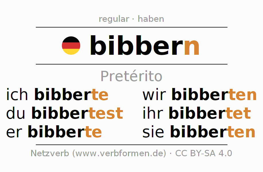 As formas de conjugação do verbo bibbern (tremer, tremor) no pretérito são: ich bibberte, du bibbertest, er bibberte, wir bibberten, ihr bibbertet, sie bibberten