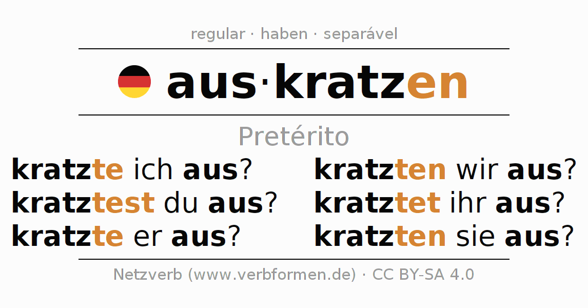 O verbo auskratzen (hat) é totalmente conjugado em todas as pessoas e números no Pretérito Indicativo