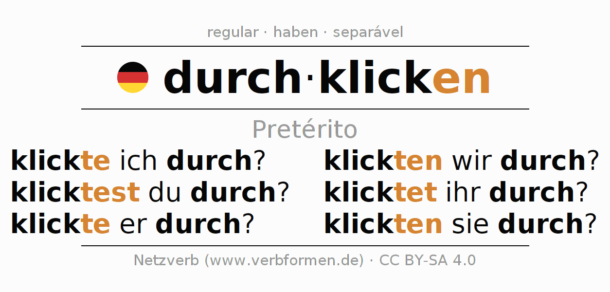O verbo durchklicken é totalmente conjugado em todas as pessoas e números no Pretérito Indicativo