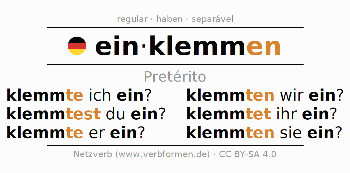 Formas verbais no Pretérito do verbo einklemmen