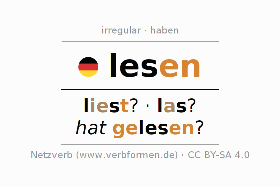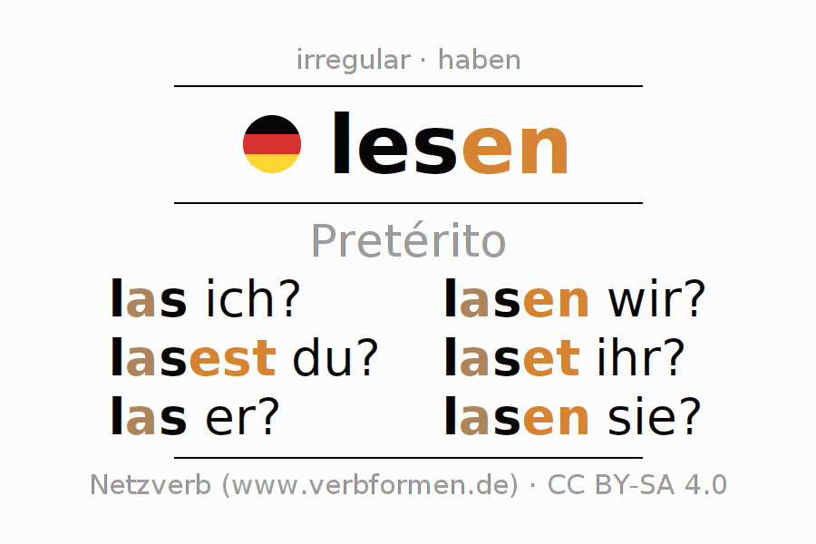 A conjugação do verbo lesen no Ativo Pretérito Indicativo Pretérito é: las ich?, las(es)t du?, las er?, lasen wir?, las(e)t ihr?, lasen sie?.A formação dessas formas segue determinadas regras gramaticais. Os requisitos para a conjugação do verbo como forma verbal simples no lesen do Pretérito. Comentários ☆