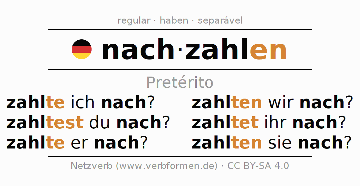 O verbo nachzahlen é totalmente conjugado em todas as pessoas e números no Pretérito Indicativo