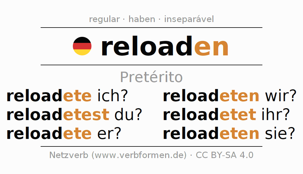 O verbo reloaden é totalmente conjugado em todas as pessoas e números no Pretérito Indicativo