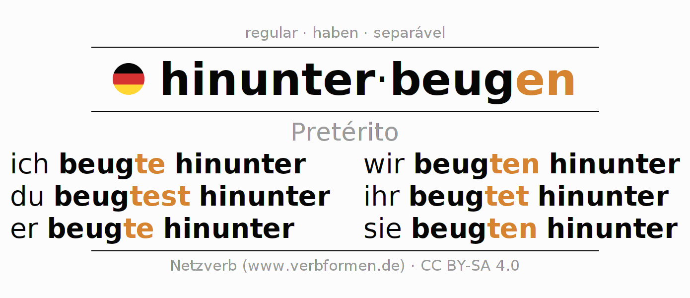 - Como conjugar o verbo hinunterbeugen no Pretérito?