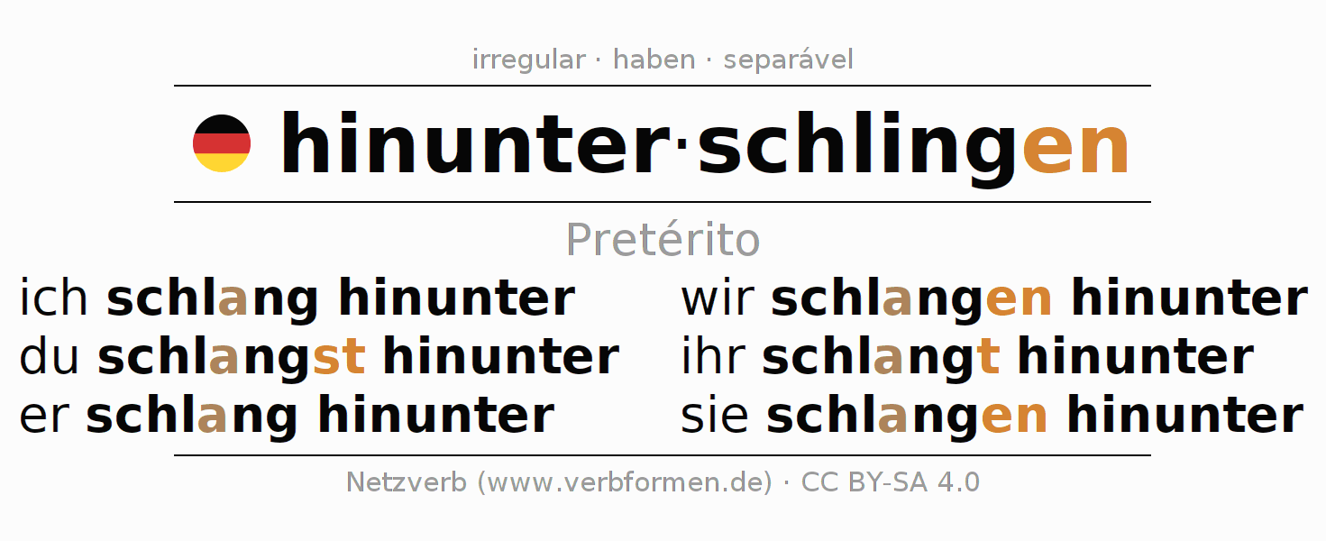 Formas verbais no Pretérito do verbo hinunterschlingen