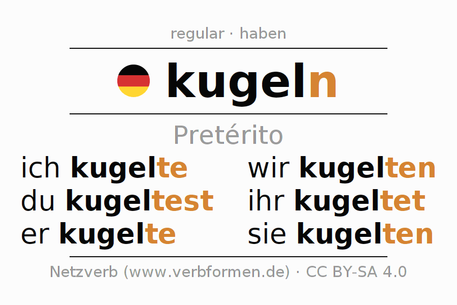 O verbo kugeln é totalmente conjugado em todas as pessoas e números no Pretérito Indicativo