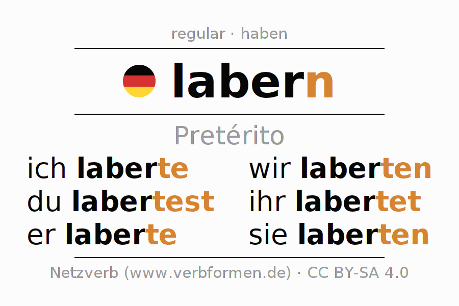 As formas de conjugação do verbo labern (tagarelar, falar demais) no pretérito são: ich laberte, du labertest, er laberte, wir laberten, ihr labertet, sie laberten