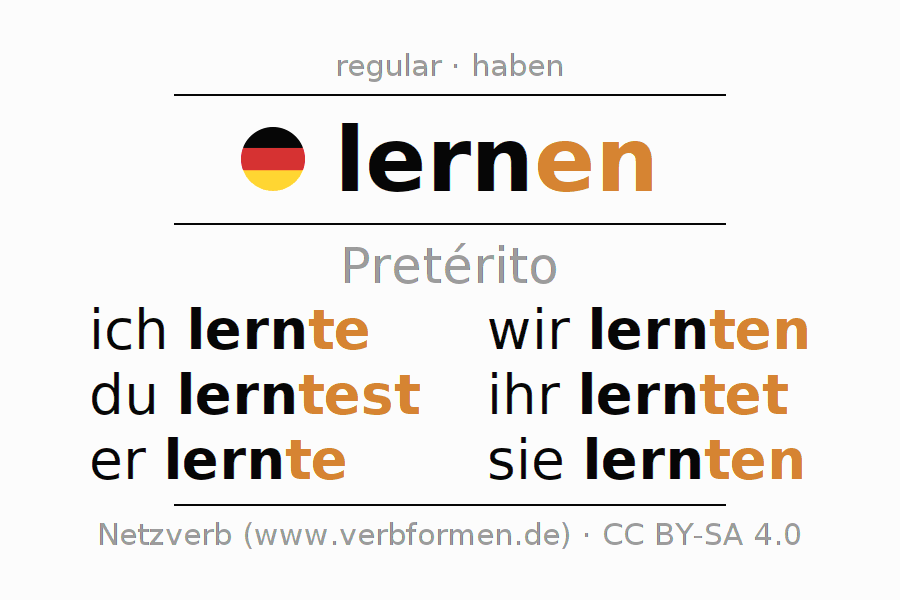 O verbo lernen é totalmente conjugado em todas as pessoas e números no Pretérito Indicativo