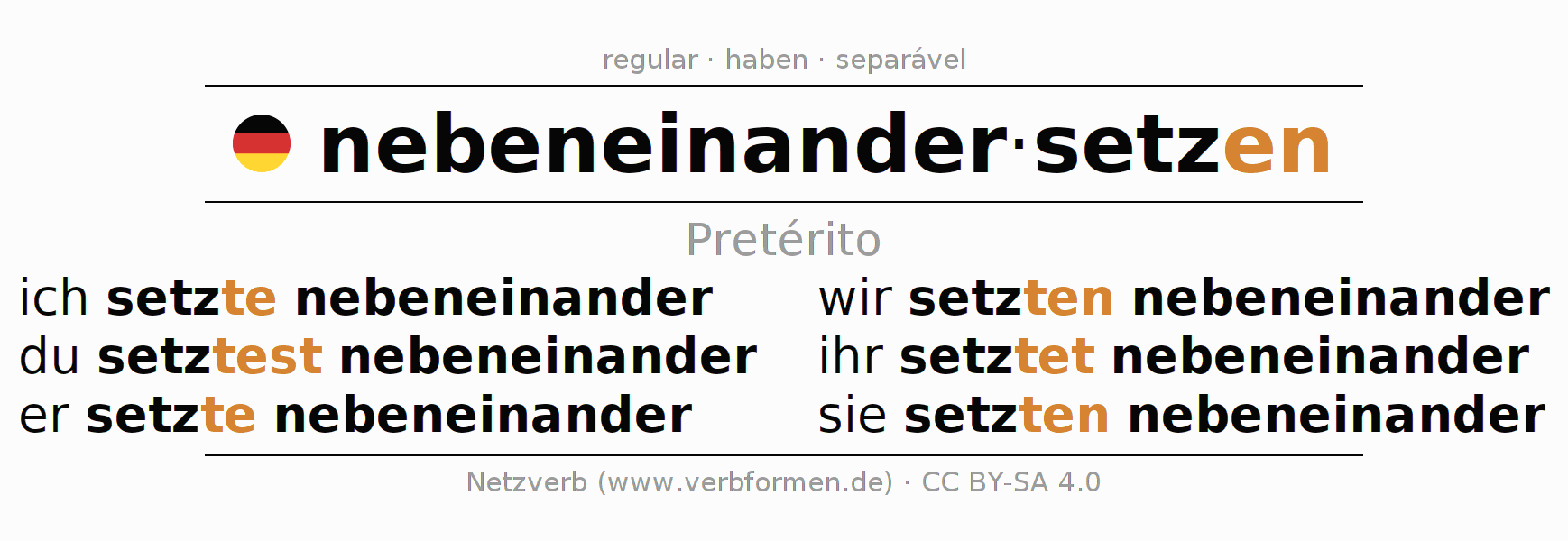 O verbo nebeneinandersetzen é totalmente conjugado em todas as pessoas e números no Pretérito Indicativo