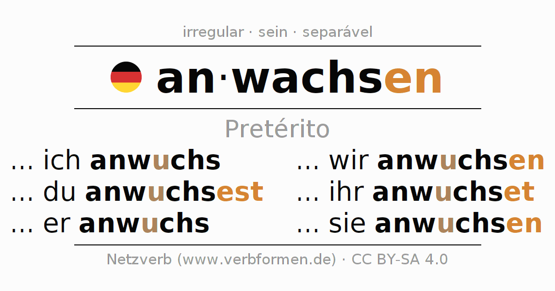 - Como conjugar o verbo anwachsen no Infinitivo?