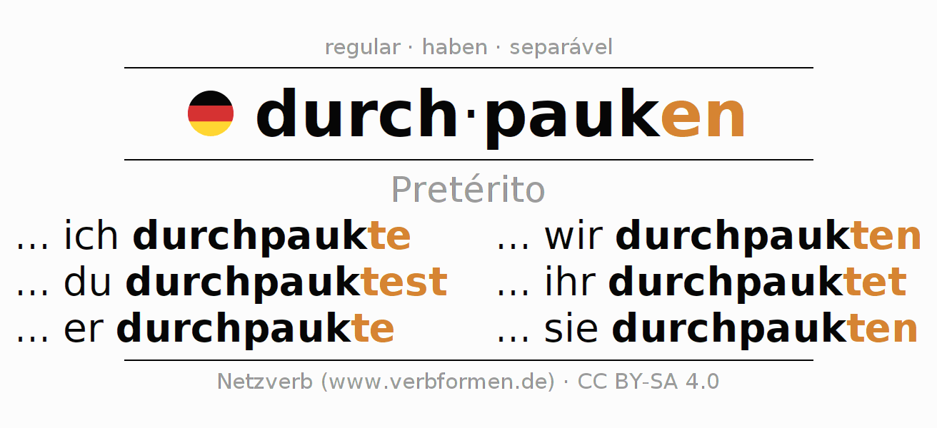 O verbo durchpauken é totalmente conjugado em todas as pessoas e números no Pretérito Indicativo