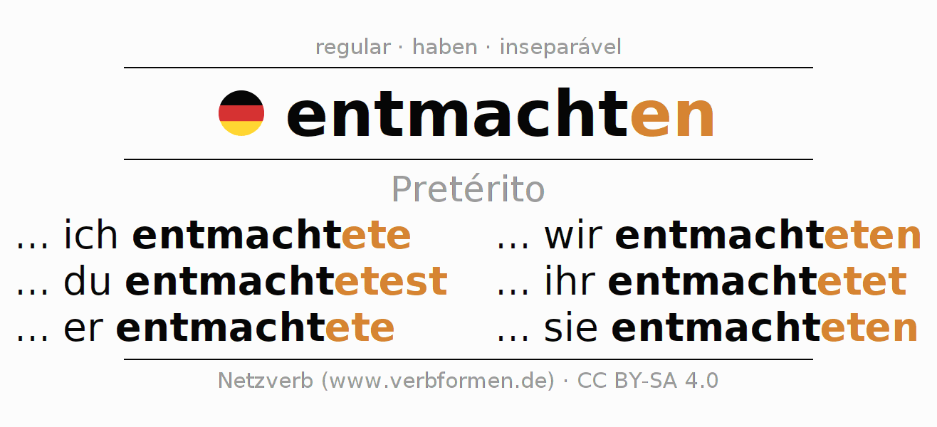 Regras adicionais para conjugação do verbo entmachten