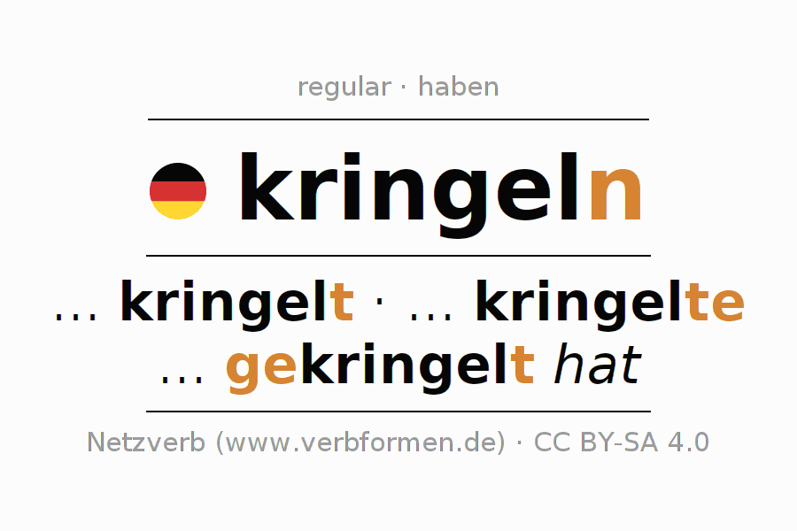 A conjugação do verbo kringeln no Ativo Pretérito Indicativo Pretérito é: ... ich kringelte, ... du kringeltest, ... er kringelte, ... wir kringelten, ... ihr kringeltet, ... sie kringelten.A formação dessas formas segue determinadas regras gramaticais. Os requisitos para a conjugação do verbo como forma verbal simples no kringeln do Pretérito. Comentários ☆