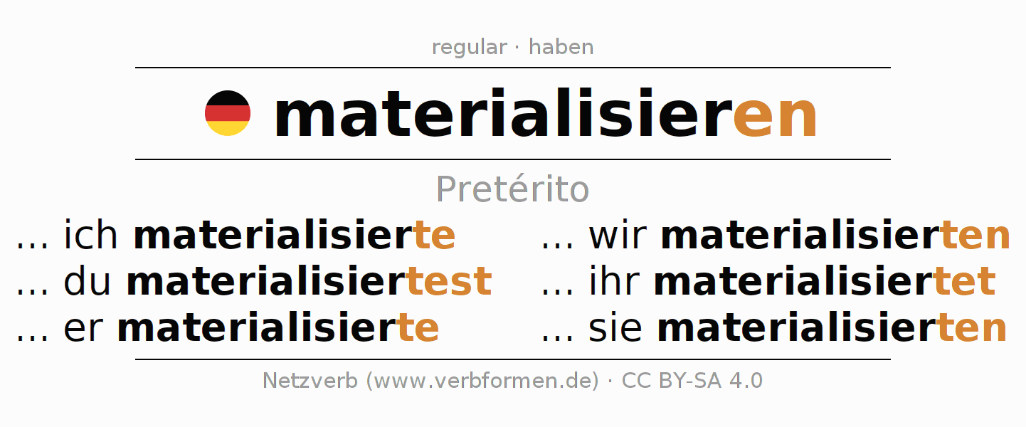 O verbo materialisieren é totalmente conjugado em todas as pessoas e números no Pretérito Indicativo