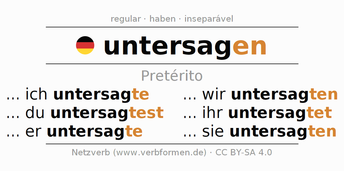 O verbo untersagen é totalmente conjugado em todas as pessoas e números no Pretérito Indicativo