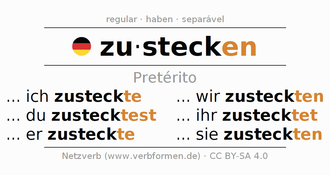 O verbo zustecken é totalmente conjugado em todas as pessoas e números no Pretérito Indicativo