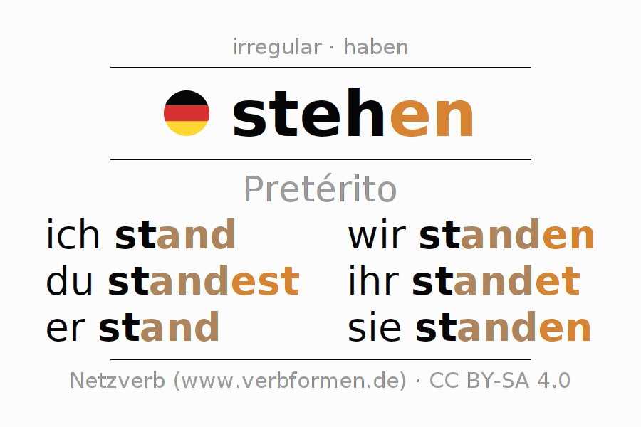 O verbo stehen (hat) é totalmente conjugado em todas as pessoas e números no Pretérito Indicativo