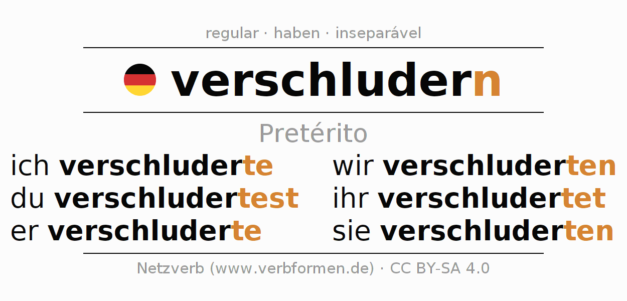As formas de conjugação do verbo verschludern (negligenciar, deixar de lado) no pretérito são: ich verschluderte, du verschludertest, er verschluderte, wir verschluderten, ihr verschludertet, sie verschluderten