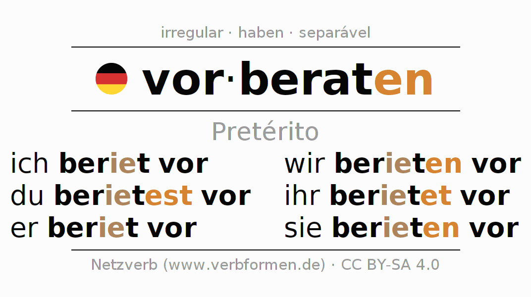 O verbo vorberaten é totalmente conjugado em todas as pessoas e números no Pretérito Indicativo