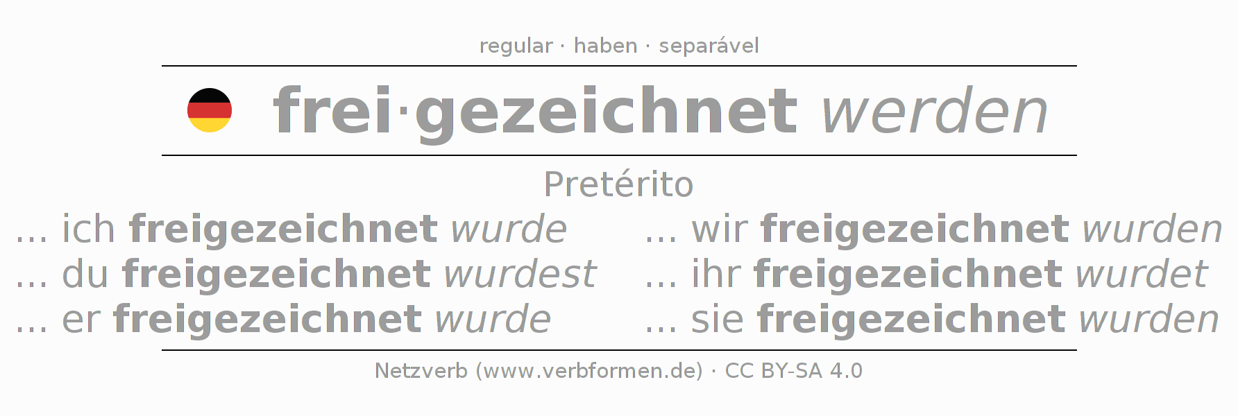 Formas verbais no Pretérito do verbo freizeichnen