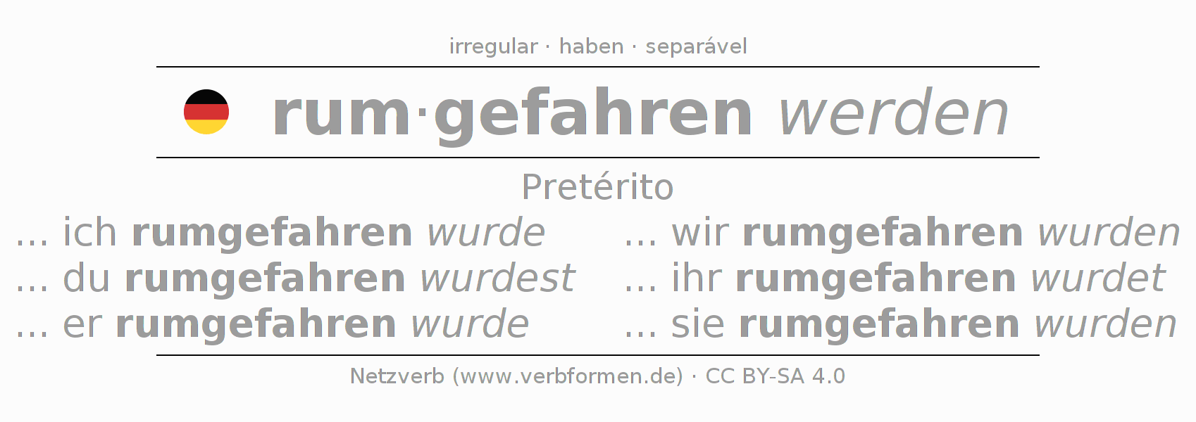 O verbo rumfahren (hat) é totalmente conjugado em todas as pessoas e números no Pretérito Indicativo