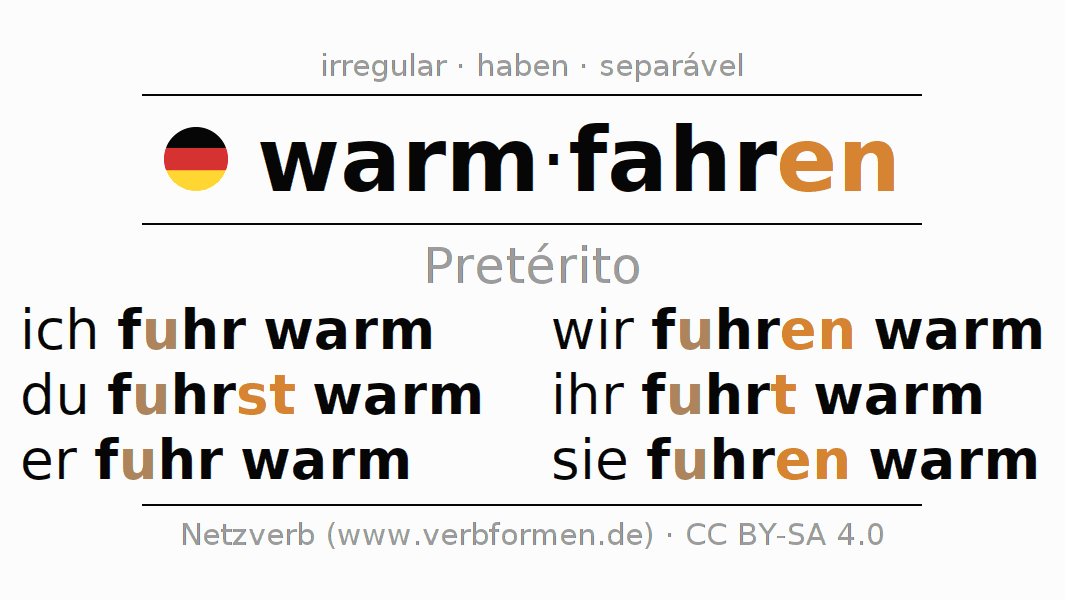 Formas verbais no Pretérito do verbo warmfahren