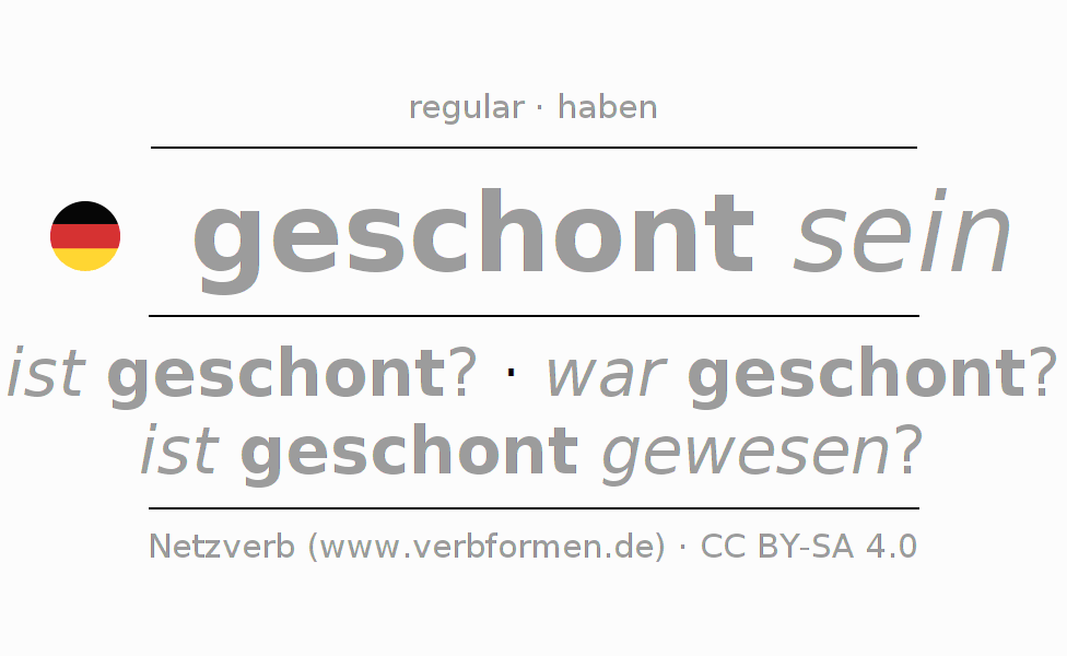 A conjugação do verbo schonen no Estado passivo Pretérito Indicativo Pretérito é: war ich geschont?, warst du geschont?, war er geschont?, waren wir geschont?, wart ihr geschont?, waren sie geschont?.A formação dessas formas segue determinadas regras gramaticais. Os requisitos para a conjugação do verbo como forma verbal simples no schonen do Pretérito. Comentários ☆