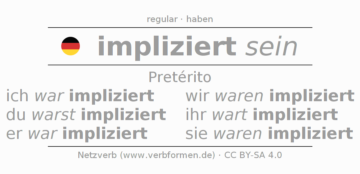 O verbo implizieren é totalmente conjugado em todas as pessoas e números no Pretérito Indicativo