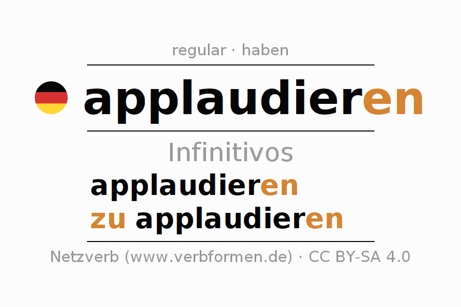 As formas do infinitivo do verbo applaudieren (aplaudir, bater palmas) são: applaudieren, zu applaudieren