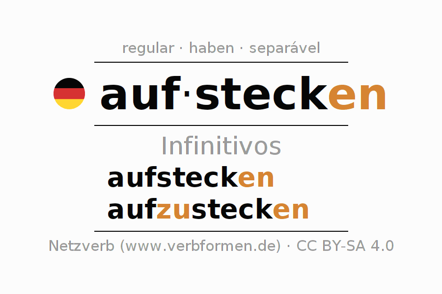 As formas do infinitivo do verbo aufstecken (desistir, fixar) são: aufstecken, aufzustecken