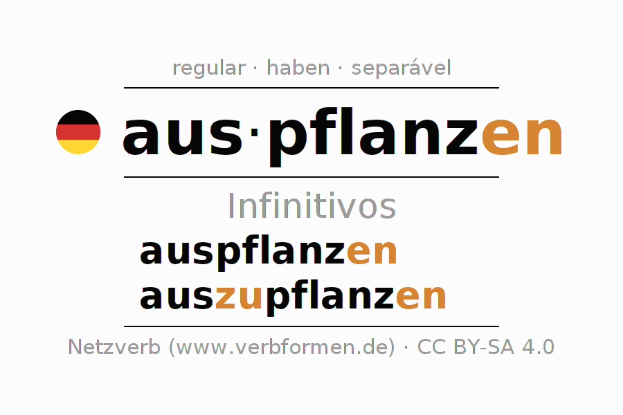 As formas do infinitivo do verbo auspflanzen (transplantar, plantar) são: auspflanzen, auszupflanzen