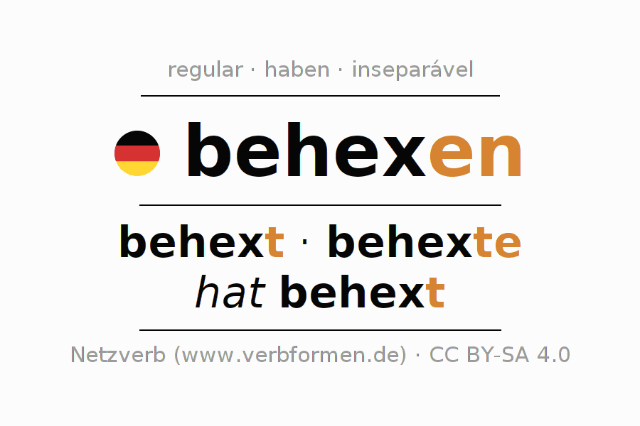 O verbo behexen é totalmente conjugado em todas as pessoas e números no Infinitivo Presente Perfeito