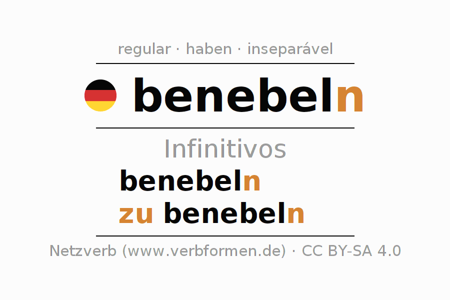 As formas do infinitivo do verbo benebeln (confundir, deixar tonto) são: benebeln, zu benebeln