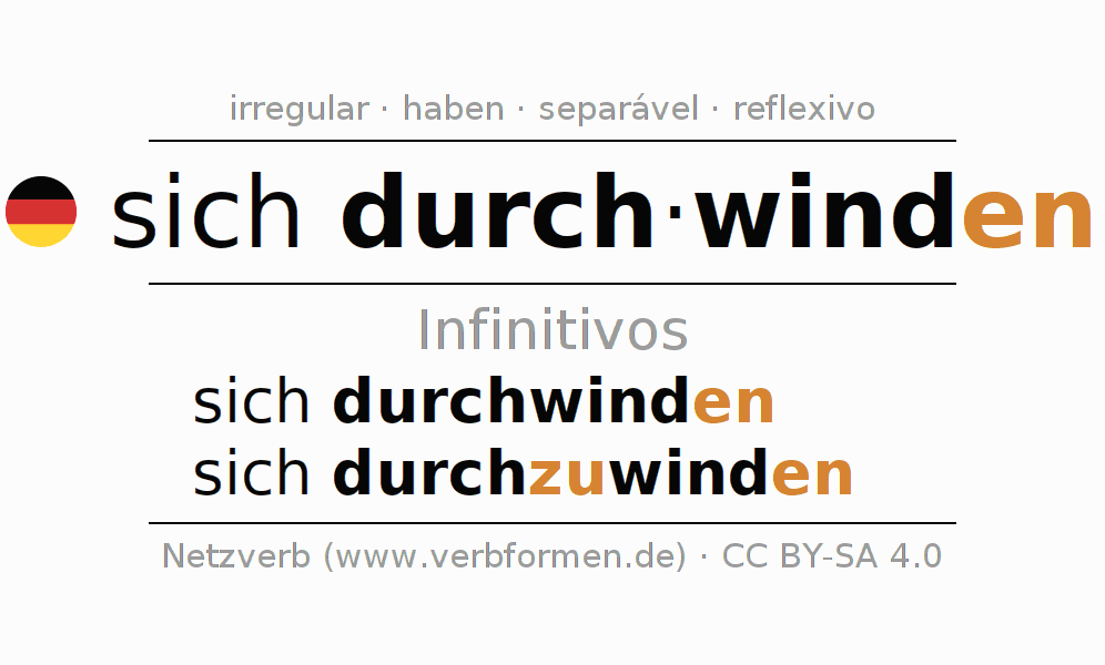 As formas do infinitivo do verbo sich durchwinden (passar, transitar) são: sich durchwinden, sich durchzuwinden