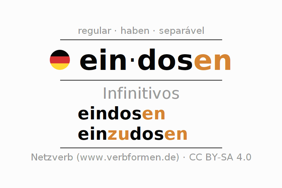 As formas do infinitivo do verbo eindosen (enlatado, enlatar) são: eindosen, einzudosen