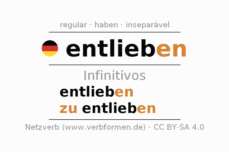 As formas do infinitivo do verbo entlieben (deixar de amar, deixar de amar-se) são: entlieben, zu entlieben