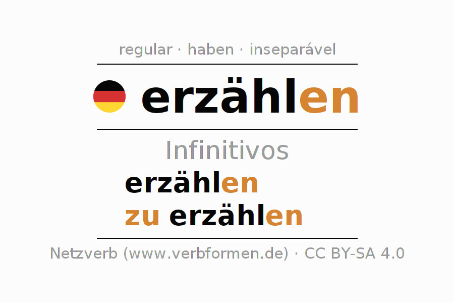 As formas do infinitivo do verbo erzählen (contar, narrar) são: erzählen, zu erzählen