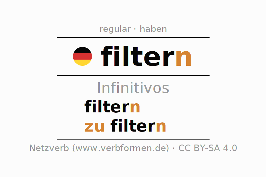 As formas do infinitivo do verbo filtern (filtrar, selecionar) são: filtern, zu filtern