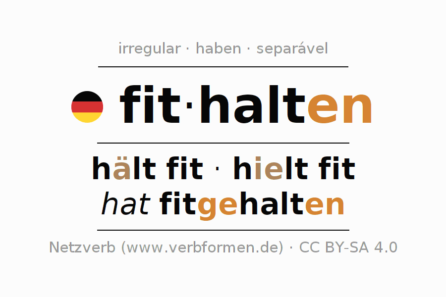 As formas do infinitivo do verbo fithalten (manter a forma, manter-se em forma) são: fithalten, fitzuhalten