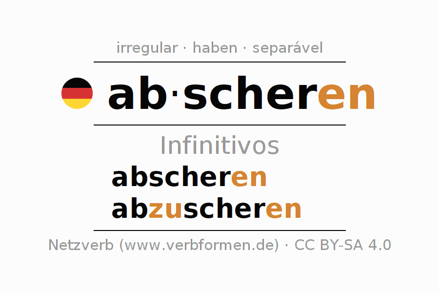 A conjugação do verbo abscheren no Ativo Infinitivo Presente Perfeito forma básica é: abscheren, abzuscheren.A formação dessas formas segue determinadas regras gramaticais. Os requisitos para a conjugação do verbo como forma verbal simples no abscheren do Infinitivo. Comentários ☆