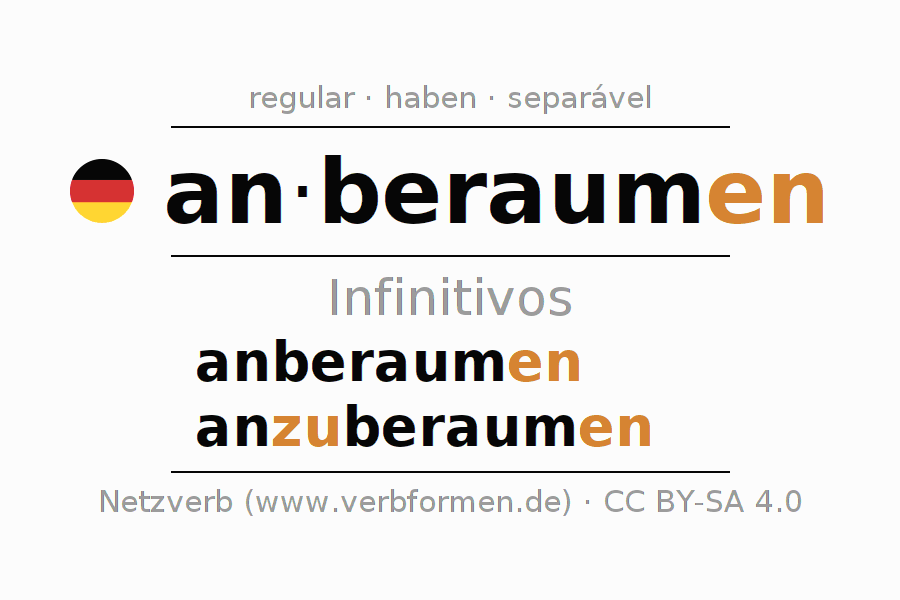 O verbo anberaumen é totalmente conjugado em todas as pessoas e números no Infinitivo Presente Perfeito