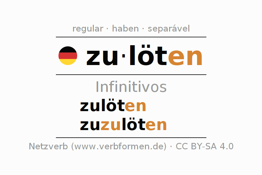 O verbo zulöten é totalmente conjugado em todas as pessoas e números no Infinitivo Presente Perfeito