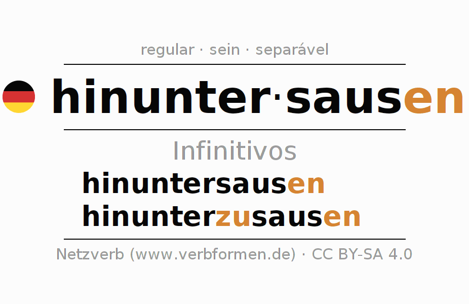 As formas do infinitivo do verbo hinuntersausen (descer rapidamente) são: hinuntersausen, hinunterzusausen