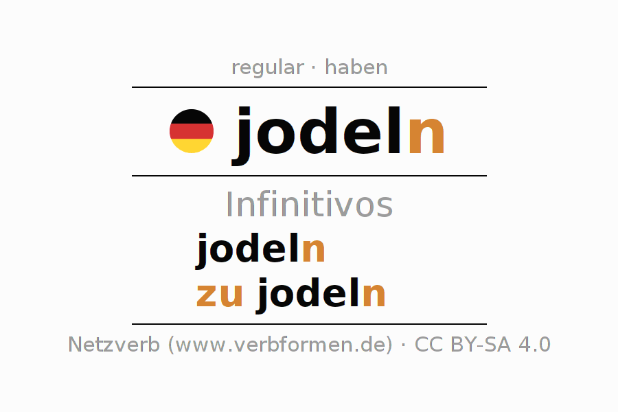 As formas do infinitivo do verbo jodeln (cantar, cantar à tirolesa) são: jodeln, zu jodeln