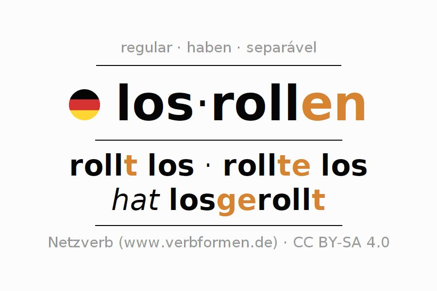 As formas do infinitivo do verbo losrollen (começar a rolar, rolar) são: losrollen, loszurollen